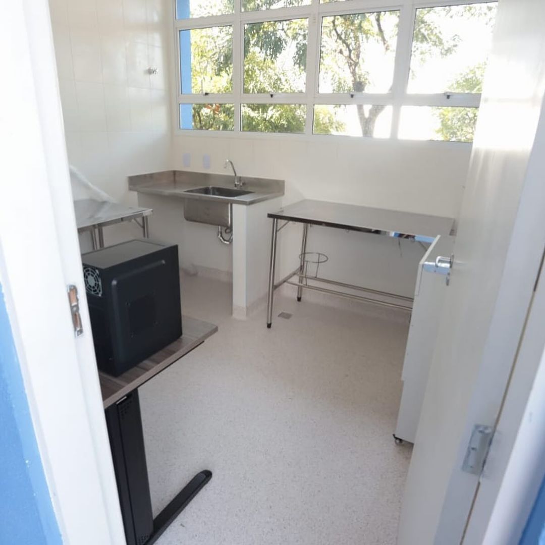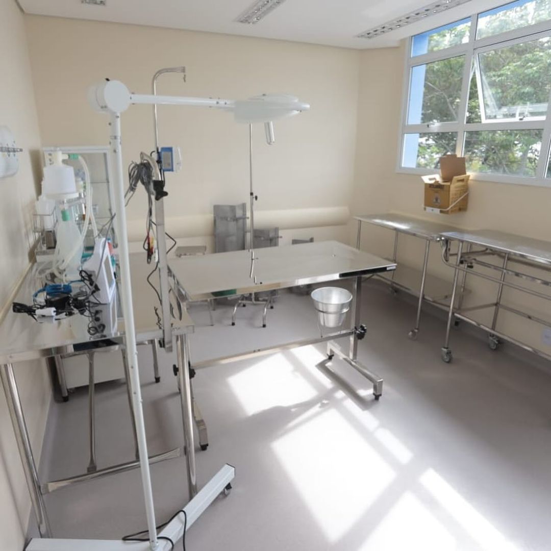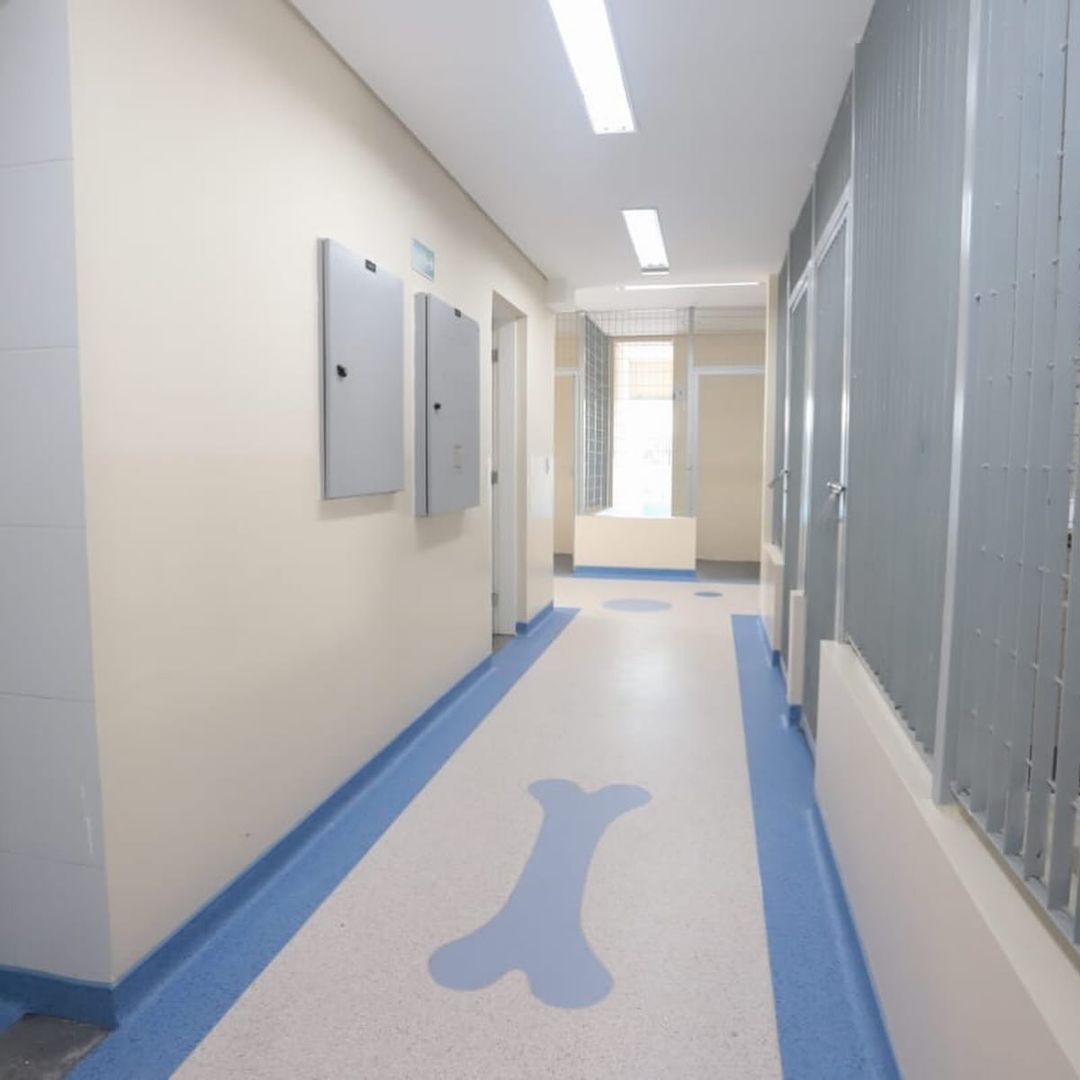 As instalações do hospital incluem consultórios, salas cirúrgicas, pré e pós-operatórios, áreas de internação, observação e espera, além de um solário para cães e gatos, espaço para adoção, áreas administrativas, copa, laboratório, salas de coleta e esterilização.